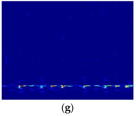 Time-frequency diagram of 7 fault status: (a) Status 1; (b) Status 2; (c) Status 3; (d) Status 4; (e) Status 5; (f) Status 6; and (g) Status 7.