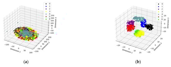 In Figure 7, using the test set feature data as an example, since none of the methods proposed in this paper achieved 100% accuracy under the test set, there must have been some points that did not fall within a cluster. In other words, it is because some features are identified as features of other fault statuses that some feature points are not in a cluster and therefore the accuracy is not 100%.