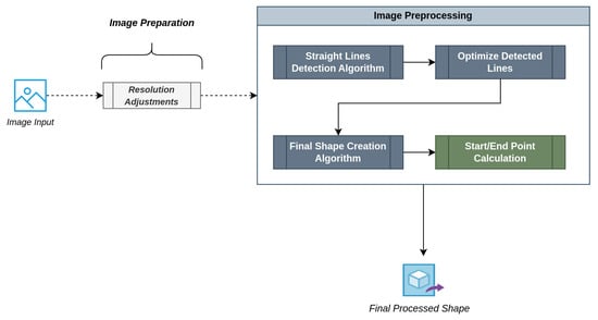 A high-level approach to our shape detection algorithm is depicted in Figure 1. As aforementioned, the system initially reads an input image file containing a primal version of the desired shape. Note that this image can either be a picture of a hand-drawn shape by the physician or a virtually created one using any image manipulation program. The only constraints that need to be taken into account are: