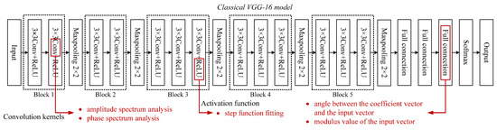 In this section, we will show the process analysis method of the CNN model. It is displayed based on the composition of the CNN model. Hence, we provide analysis methods in convolution, activation, and full connection, respectively. The concrete study content is shown in Figure 3 (red words).
