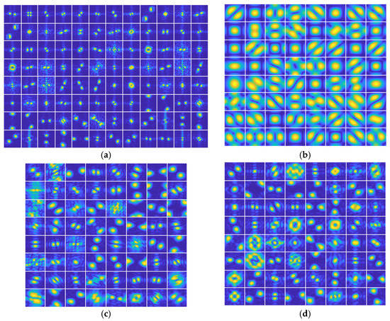 The amplitude spectrums of the convolution kernels in the first convolution layer of four classical pre-trained CNN models: (a) AlexNet; (b) VGG16; (c) GoogLeNet; (d) ResNet-50.