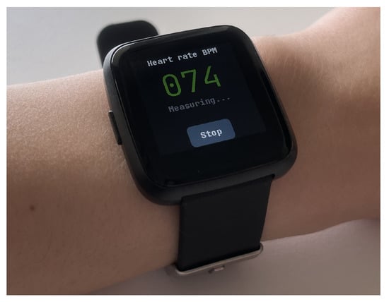 The PineTime smartwatch comes with an open-source real-time operating system (RTOS) written in C++, called InfiniTime. The RTOS provides features such as a graphical user interface (GUI), sensor drivers, and BLE connectivity. The final trained model was integrated into the RTOS by rewriting the original service for measuring the user’s heart rate, offering seamless compatibility with the original BLE service for obtaining the heart rate and with the existing GUI for presenting the heart rate to the user.