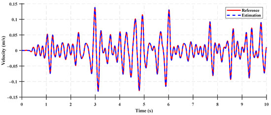 Comparison between the state estimation results for the rear suspension relative velocity of the system and the estimated states on a Class C road.