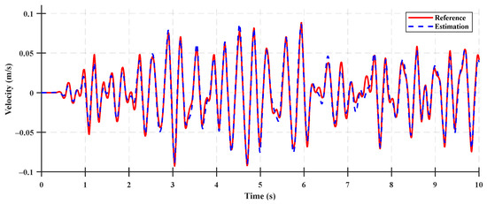 Comparison between the state estimation results for the rear suspension relative velocity of the system and the estimated states on a Class B road.