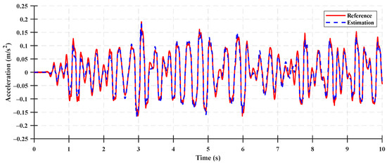 Comparison between the state estimation results for the cabin vertical acceleration of the system and the estimated states on a Class C road.