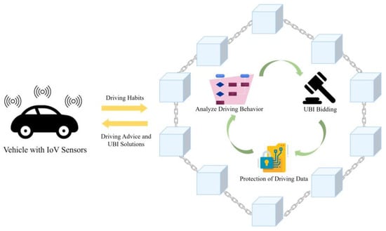 Firstly, constructing the UBI system on the blockchain platform, combined with utilizing IoV technology, facilitates detailed recordings of driving behavior. By incentivizing drivers to adopt safe habits through reduced insurance premiums, this system promotes the cultivation of safer driving practices. Integrating IoV technology enables the comprehensive collection and analysis of driving data, providing valuable insights into driver behavior. Secondly, an auction mechanism has been designed for implementation on a blockchain platform utilizing elliptic curve cryptography and first-price sealed-bid auctions. These sophisticated technologies ensure both information security and auction fairness. By simplifying the process for drivers, who are only required to provide their insurance requirements, and enabling insurance companies to bid based on the drivers’ recorded behavior on the blockchain, this auction mechanism prevents drivers from being subjected to excessive charges. Simultaneously, it facilitates insurance companies’ understanding of drivers’ behavior, fostering a mutually beneficial environment. Thirdly, the development of a blockchain-based UBI maintenance system allows for the comparison of driving data and insurance claims, enabling the identification of correlations between various driving behaviors and associated risks. This knowledge facilitates the recommendation of insurance plans that align with a driver’s typical driving habits, ultimately enhancing the overall efficiency and effectiveness of the UBI system.