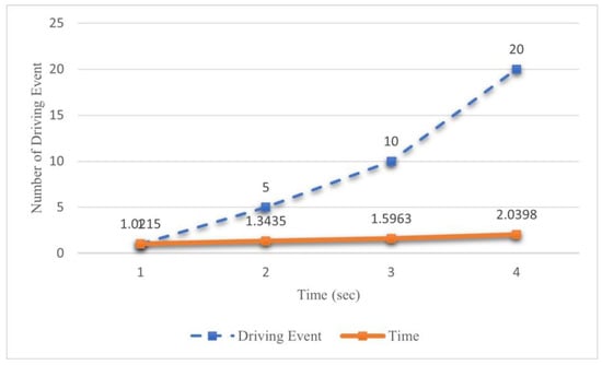 In light of each driving event, the system must modify the insurance record per the particular event. Based on the empirical findings, it becomes evident that when the occurrence of driving events exhibits a significant rise, albeit with a slight increase in the system’s processing time for generating an insurance plan, it can be observed that the incremental increments are minute in nature. This observation underscores the system’s ability to effectively and promptly update the driver’s status information in real time.