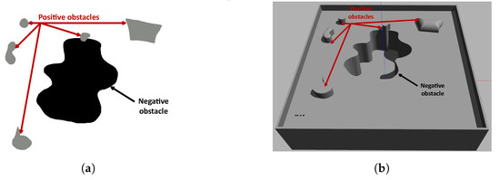 Figure 3b shows a Gazebo representation of a structured environment, where the undercut corresponds to a negative obstacle.