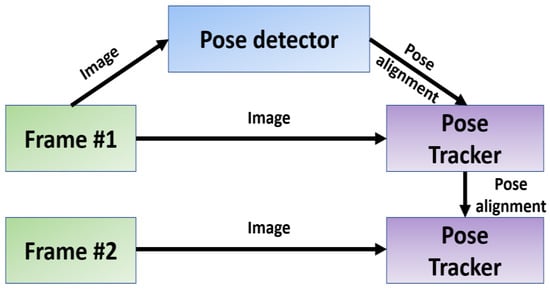 It is worth noting that, in the case of video, the detector was only applied to the first frame. For subsequent frames, the ROI was derived from the previous frame’s pose ke points, as depicted in Figure 5.