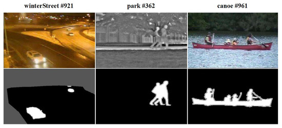 Motion Object Segmentation (MOS) [18,39,40] refers to the task of segmenting meaningful moving objects (also called foregrounds) in video frames, which is a critical step in video understanding and plays an important role in applications related to security, such as video surveillance and autonomous driving. In the video frame shown in the top row of Figure 1, moving vehicles, pedestrians, and canoes are all examples of moving objects that need to be segmented. With the development of DL and computer vision, DL-based MOS models have also been actively investigated. Among them, the mainstream methods are deep end-to-end models based on fully CNNs [18]. In the following, we will introduce the research status of deep MOS models from three aspects: training, sharing, and evaluation.