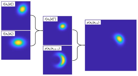 - Xiao, G.; Song, X.; Cao, H.; Zhao, S.; Dai, H.; Li, M. Augmented Extended Kalman Filter with Cooperative Bayesian Filtering and Multi-Models Fusion for Precise Vehicle Localisations. IET Radar Sonar Navig. 2020, 14, 1815–1826. [Google Scholar] [CrossRef]