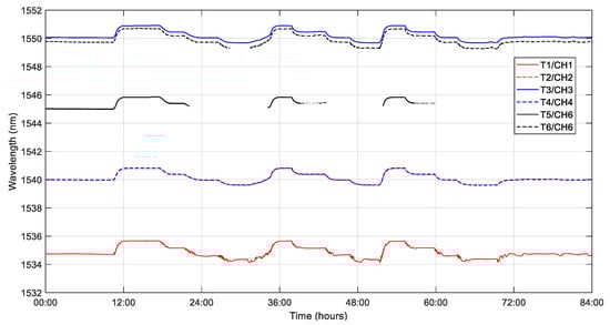 | Sensor | Sensitivity (pm/K) | Statistical Error (pm/K) |
