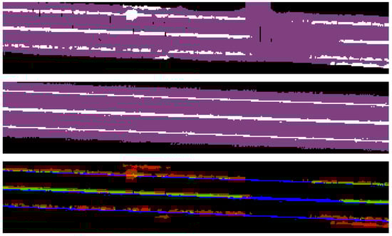 To train our DeepLabV3Plus network, we employ synchronized batch normalization [] with a batch size of 16. The training process lasts for 200 epochs, utilizing eight 2080Ti GPUs with an input image size of 640 × 640. The network’s output stride is eight.