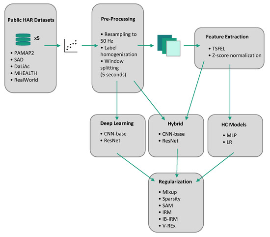 Bento, N.; Rebelo, J.; Carreiro, A.V.; Ravache, F.; Barandas, M. Exploring Regularization Methods for Domain Generalization in Accelerometer-Based Human Activity Recognition. Sensors 2023, 23, 6511. https://doi.org/10.3390/s23146511