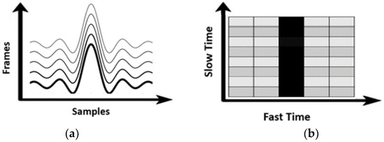 (a) The range profile with frame (time), and (b) range–Doppler map.