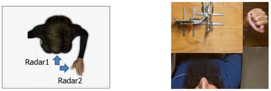 In the measurement campaigns, as shown in Figure 3, the radars were placed facing the chest and wrist. The distance from each radar device to the chest and wrist was 0.5 m.