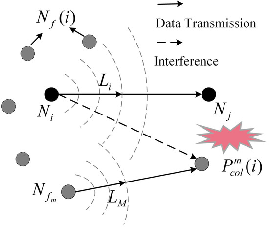 A CSMA-based MAC protocol is applied to eliminate contention and retransmission caused by conflicts. When a relay node accesses the channel, it may restrict the transmission of the relay nodes in other routing paths within the listening range. The probability of a relay node interfering with the relay nodes in other paths is defined as the multi-path conflict probability. Next, we provide the formal mathematical expression for the conflict probability.