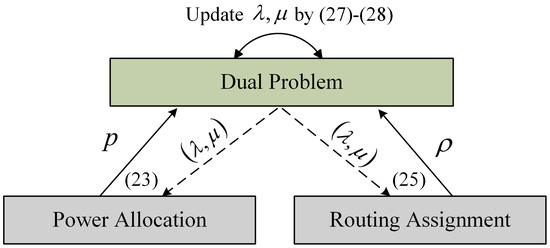 22] investigated an energy-efficient collaborative transmission problem and transformed it into a non-convex constrained optimization problem. Based on fractional programming and dual decomposition, a distributed iterative algorithm for power splitting, power allocation, and relay selection was developed to solve the optimization problem.