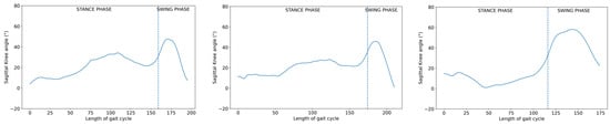 Also, three green cycles became orange when considering raw signals. Figure 14 displays these cycles; we can confirm that the associated signals are visually different from the NGPs, especially in the stance phase.