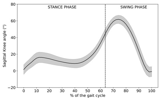 Comparatively to the literature, which usually refers to one average Normal Gait Profile [,] (per joint), the results of our research indicate that three NGPs are necessary to comprehensively characterize normal gait, based on knee angular kinematics in the sagittal plane. It is noteworthy that we obtained three NGPs, although the healthy subjects under study were young and of a similar age. Therefore, we expect the number of NGPs to be increased when considering databases of healthy subjects spanning larger age ranges.