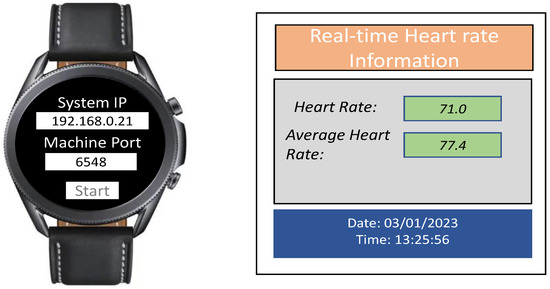 Due to the nature of the task and the interaction with the avatar, the children experience different emotions at various stages of the session. For instance, the child often becomes happy or surprised when the steps to program the robot are completed. Similarly, the child often feels sad or angry when the robot Dash fails to move based on the child’s intent. The videos of these sessions are recorded, where each frame contains the face of the participant, the window containing the avatar, the window showing the robot Dash, and the audio of the interaction between the child and the avatar, as shown in Figure 1. Each child wears a Samsung Galaxy 3 smartwatch that collects heart rate information. To transmit the heart rate data in raw form in real time, a smartwatch application was developed using the Tizen OS. Figure 2 shows the Samsung Galaxy watch with the Tizen-based real-time heart rate transmitting app, and the desktop app to receive the heart rate information.
