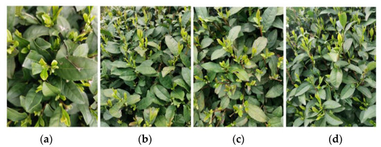 The images of the tea buds were acquired under different conditions: (a) near; (b) far; (c) top; and (d) side views.