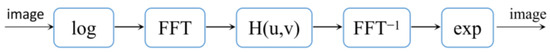 The specific implementation process for homomorphic filtering is to first take the logarithm of the image to be enhanced, and then perform Fourier transform. In the frequency domain, the homomorphic filter H is used for filtering, and finally the enhanced image is obtained through inverse Fourier transform and exponential transformation, as shown in Figure 10.