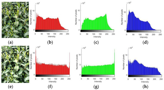 As shown in Figure 15, global homomorphic filtering causes over enhancement of the pixels in one part of the image, resulting in the loss of image details in another part. In contrast, local homomorphic filtering takes into account the local characteristics of the image. As a result of the enhancement, the image exhibits uniform illumination, moderate brightness and darkness, clear details, and a superior visual effect. As shown in Table 3, it can be observed that the original image undergoes a decrease in entropy after global homomorphic filtering, indicating a reduction in image information and quality. However, after applying local homomorphic filtering, the entropy increases, indicating an improvement in the image information and quality. Furthermore, it can be observed that the entropy also increases as the number of segmented sub-images increases, which indicates that a higher number of segmented sub-images leads to better image quality after local homomorphic filtering, with richer information and enhanced visibility of tea leaf details.