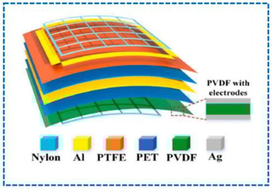 - Dong, K.; Peng, X.; Wang, Z.L. Fiber/Fabric-Based Piezoelectric and Triboelectric Nanogenerators for Flexible/Stretchable and Wearable Electronics and Artificial Intelligence. Adv. Mater. 2019, 32, e1902549. [Google Scholar] [CrossRef]