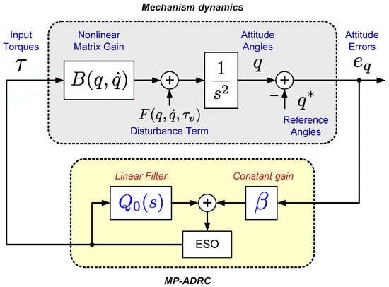where are constant matrices and is the generalized disturbance vector that includes the nonlinear dynamics and the external disturbances. Before continuing to develop the MP-ADRC, the following assumptions are considered: