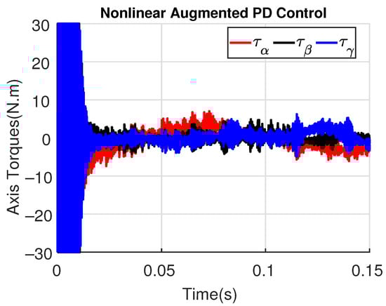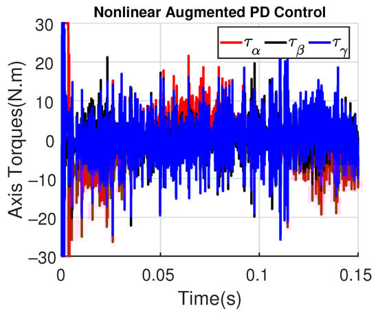 Simulation 2: Axis Torques (, , ) with augmented PD control ().