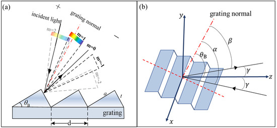 where γ denotes the grating deflection angle, which is the angle between the incident light and the principal plane, as shown in Figure 1b.