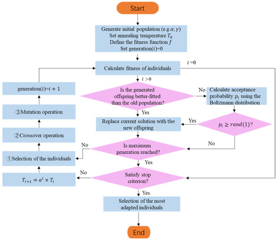Flowchart of the genetic simulated annealing algorithm.