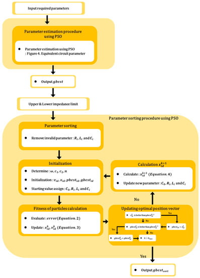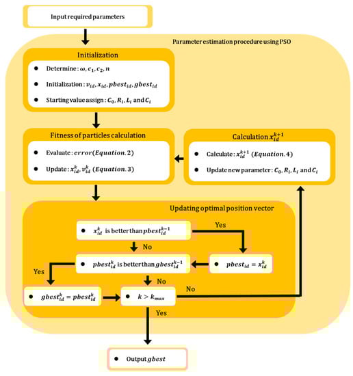 Proposed procedure of PSO algorithm for parameter estimation of high-degree electrical equivalent circuit.