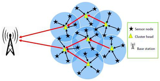 WSN contains many densely packed sensor nodes distributed across the monitored region. Low-cost nodes are able to communicate with one another over wireless links in order to convey their acquired data to the sink node. The result of the power limits of the nodes, however, is that energy saving becomes a significant design difficulty for WSNs. Also, as sensor nodes are frequently positioned in risky or difficult-to-reach areas, it may be difficult to charge up their cells. Hence, there is much research potential in the areas of network longevity and energy efficiency [1,2].