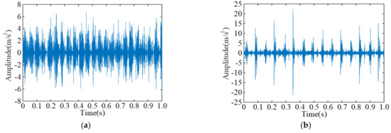 Figure 9 shows the time-domain waveform diagrams of vibration signals of four fault types.
