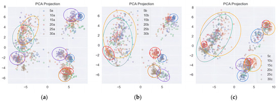 PCA dimensionality reduction diagram of operating state recognition results. (a) Vertical diameter direction; (b) Horizontal radial; (c) Axial direction.