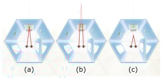 The design of a coherent virtual scenario. From the early design stages, measures and stimuli were selected with generalizability in mind. A virtual phone booth serves as a narrow space with less than 1 m between the user’s head and the walls. With this, eye vergence values can be expected to be more stable.