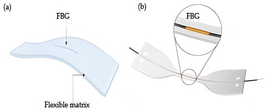 FBG encapsulated in a flexible material (a) and FBG encapsulated in dumbbell silicone (b).