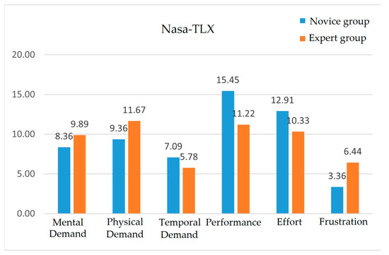 Results of workload measurements by the NASA TLX [27].