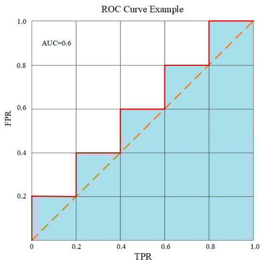 The receiver operating curve (ROC) is another evaluation tool utilized in this case study, which represents an approach to visually evaluate the performance of a given model by visualizing the ratio between TP and FP. It shows how a predictor compares with the true outcome. It is a graphical diagram demonstrating the ability to detect the correct predictions in a binary classification system. More specifically, the ROC plots the true positive rate (TPR) versus the false positive rate (FPR). Here, TPR (10) refers to the ratio of TP (correct classified “defective”) instances to the total number of Positive (“defect”)samples, while FPR (11) is the ratio of FP (incorrect predictions for the “normal” instances) to the total number of Negative (“normal”) samples. This criterion is defined as follows []:
