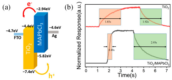 - Yang, J.L.; Liu, K.W.; Cheng, Z.; Jing, P.T.; Ai, Q.; Chen, X.; Li, B.H.; Zhang, Z.Z.; Zhang, L.G.; Zhao, H.F.; et al. Investigation of Interface Effect on the Performance of CH3NH3PbCl3/ZnO UV Photodetectors. ACS Appl. Mater. Interfaces 2018, 10, 34744–34750. [Google Scholar] [CrossRef] [PubMed]