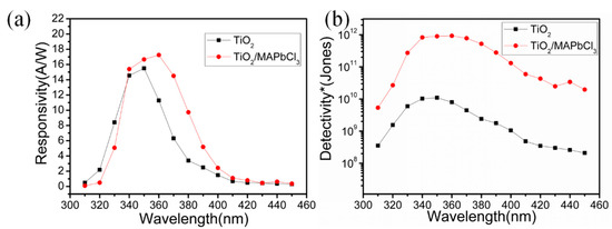 Zhang, Y.; Zhai, Y.; Zhang, H.; Wang, Z.; Zhang, Y.; Xu, R.; Ruan, S.; Zhou, J. A High-Performance UVA Photodetector Based on Polycrystalline Perovskite MAPbCl3/TiO2 Nanorods Heterojunctions. Sensors 2023, 23, 6726. https://doi.org/10.3390/s23156726