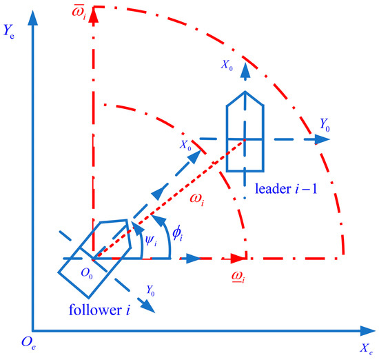 The LOS is introduced to facilitate the subsequent control design. For any group of leader–follower formations, is defined as the follower number and as the leader number. The LOS range and angle are defined as