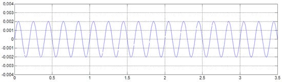 From Figure 11a, it can be found that the lower the road shape acquisition frequency, the greater the error generated by the displacement after the acceleration signal integration. The maximum value of the error appears at 0.1 Hz. By calculation, the displacement error of the acceleration sensor at 0.1 Hz is: