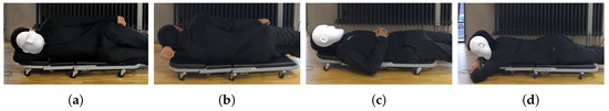 (a) Body position 2: right lateral. (b) Body position 3: left lateral. (c) Body position 4: supine. (d) Body position 5: prone.