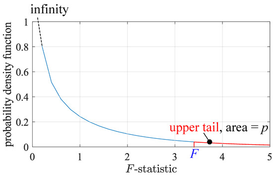 The area of the right hand side region of the F-statistic, the so-called upper-tail, is the p-value, which describes the probability that is true. The lower the p-value, the more critical the feature [25]. In Matlab, the one-way ANOVA scores a feature by its .