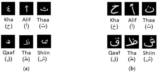 - AlJarrah, M.N.; Zyout, M.M.; Duwairi, R. Arabic Handwritten Characters Recognition Using Convolutional Neural Network. In Proceedings of the 2021 12th International Conference on Information and Communication Systems (ICICS), Valencia, Spain, 24–26 May 2021; pp. 182–188. [Google Scholar]