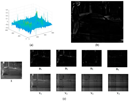 In the forthcoming section, a qualitative analysis will be conducted by contrasting the low-rank and salient components presented in Figure 4. As the salient component matrix comprises negative elements, a normalization technique is implemented to scale the values to the range from 0 to 1 for visualization.