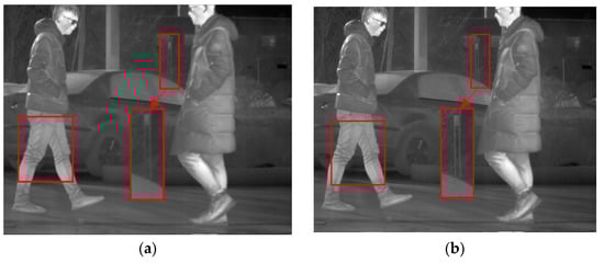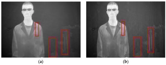 Denoising effects of ablation experiment on an image of a person: (a) Non-MIDILatLRR; (b) proposed method.